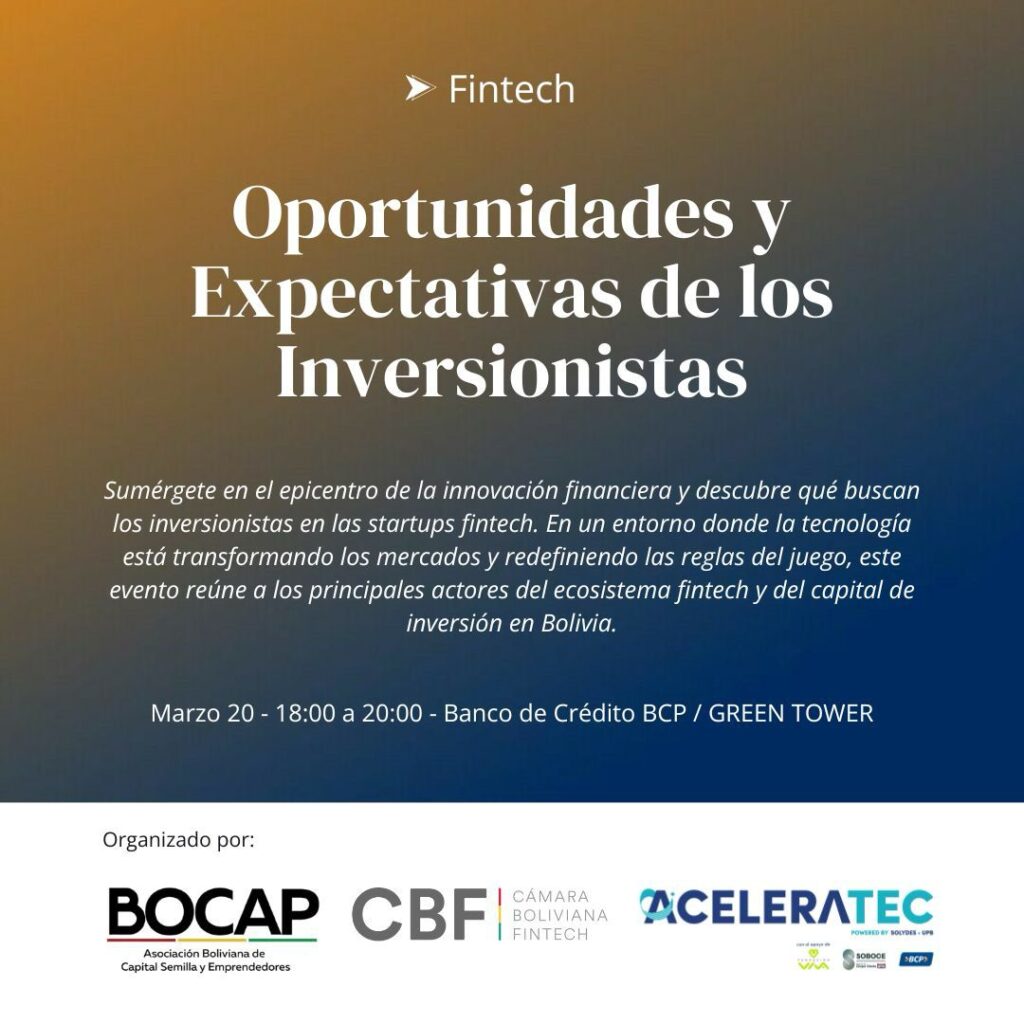 ORGANIZAN: BOCAP, Cámara Boliviana Fintech y ACELERATEC